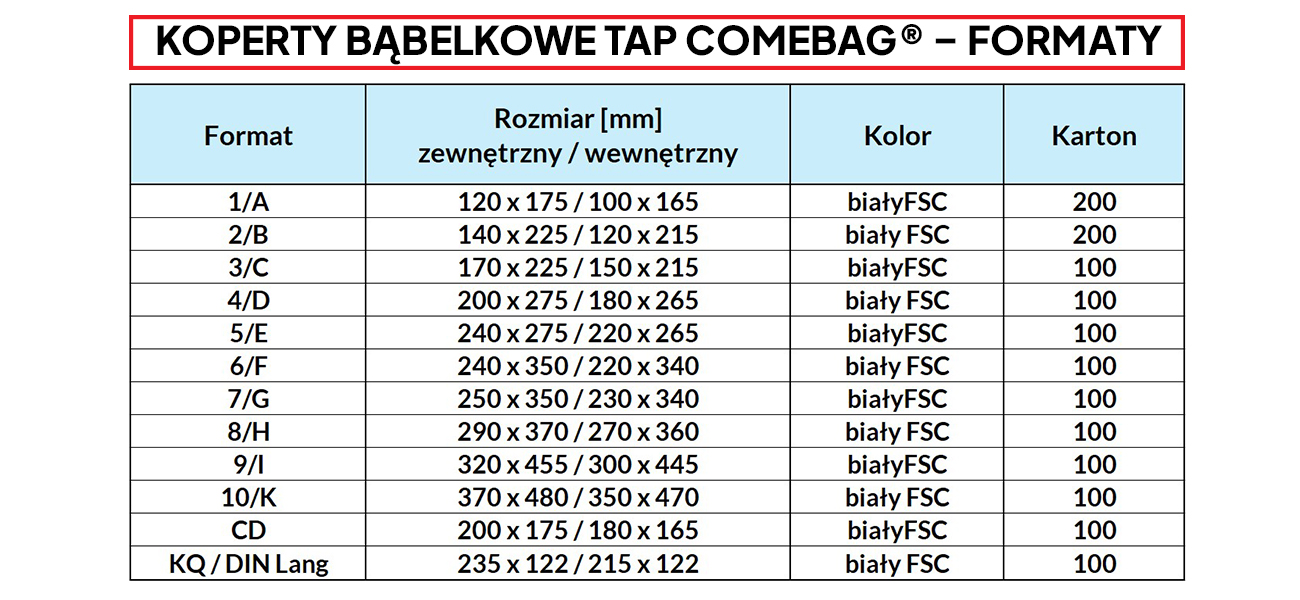 Cechy koperty bąbelkowej CD TAP Comebag®