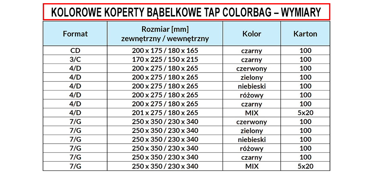 Czarna koperta bąbelkowa TAP Colorbag® w formacie 4/D (200 × 275 mm) to trwałe, eleganckie i funkcjonalne opakowanie, idealne dla produktów wymagających solidnej ochrony i estetycznej prezentacji. Papier o gramaturze 80 g/m² zapewnia wysoką odporność na uszkodzenia, a trzywarstwowa folia bąbelkowa skutecznie amortyzuje wstrząsy i chroni zawartość przed wilgocią.