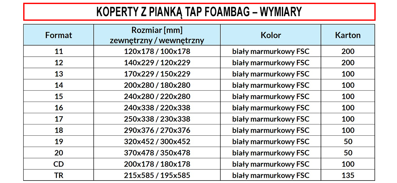 Koperta piankowa TAP Foambag w formacie K20 (370 × 478 mm) to solidne i lekkie opakowanie ochronne przeznaczone do wysyłki dużych, płaskich i delikatnych produktów. Dzięki połączeniu papieru Kraftliner o gramaturze 137 g/m² z pianką polietylenową o grubości 2,5 mm koperta skutecznie chroni zawartość przed wstrząsami, uszkodzeniami mechanicznymi oraz wilgocią.